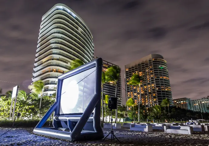The EcoCine Premier 16 System is a cutting-edge, battery-powered cinema setup designed for ultimate flexibility and portability, ideal for locations without electricity.